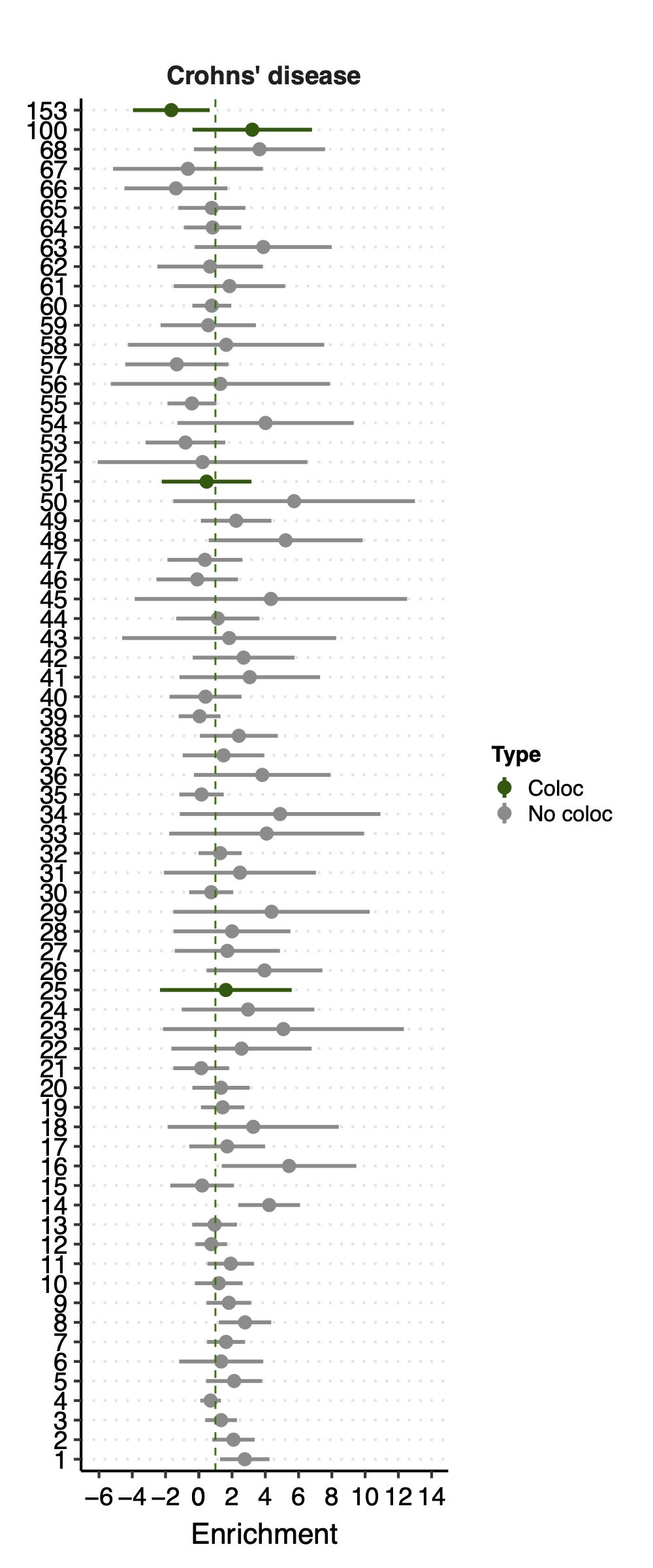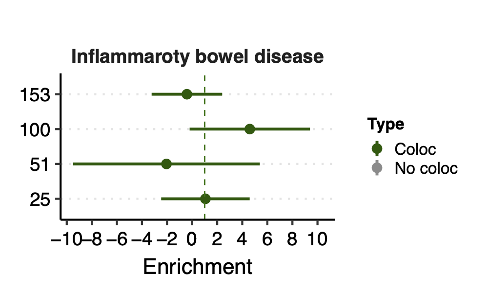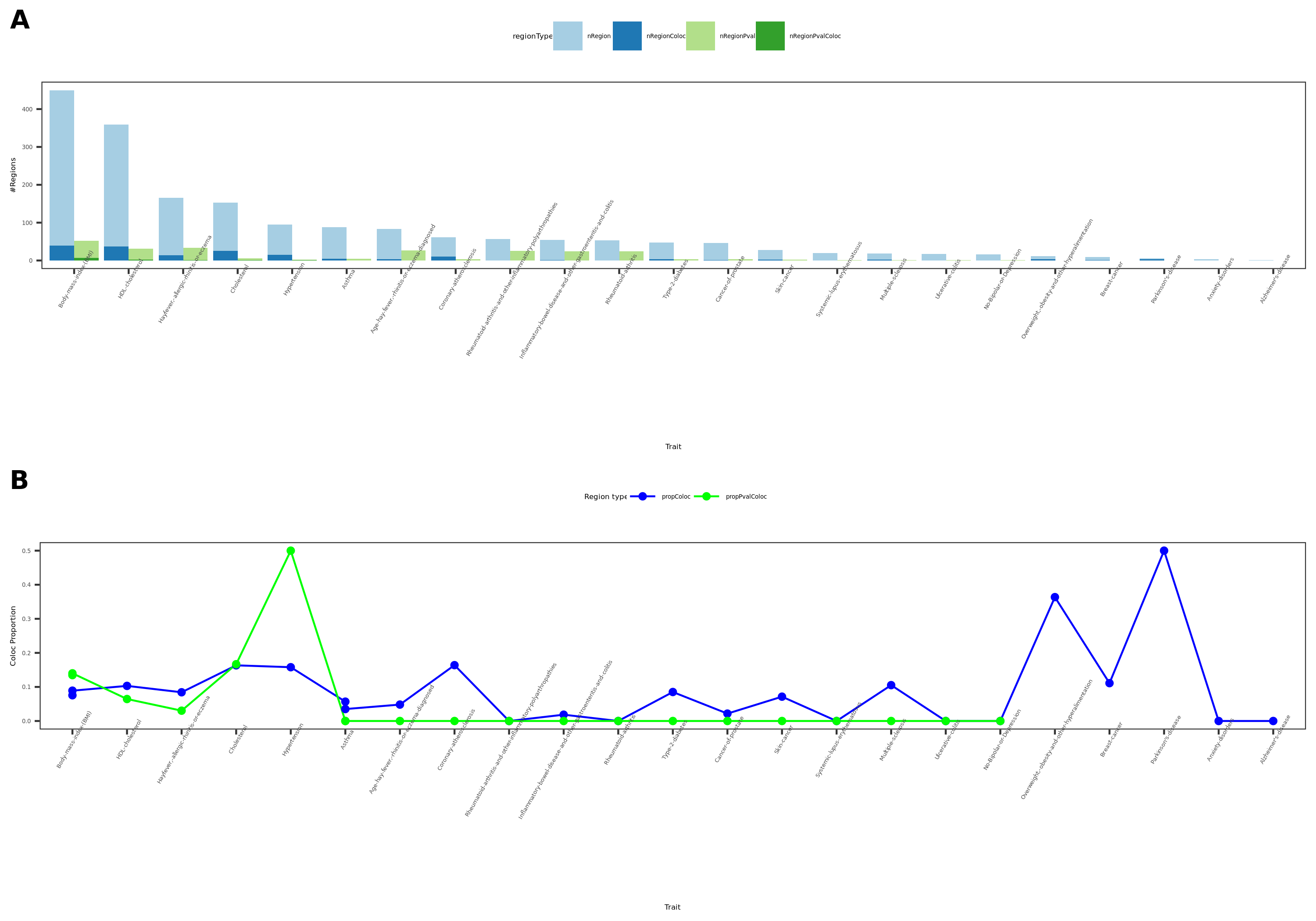 In total, we considered three (four) types of coloc. Coloc with (1) 29 blood related traits from ukbb, (2) 11 immune traits, (3) 27 more traits from ukbb. (The 4-th type is coloc with cis genes.)